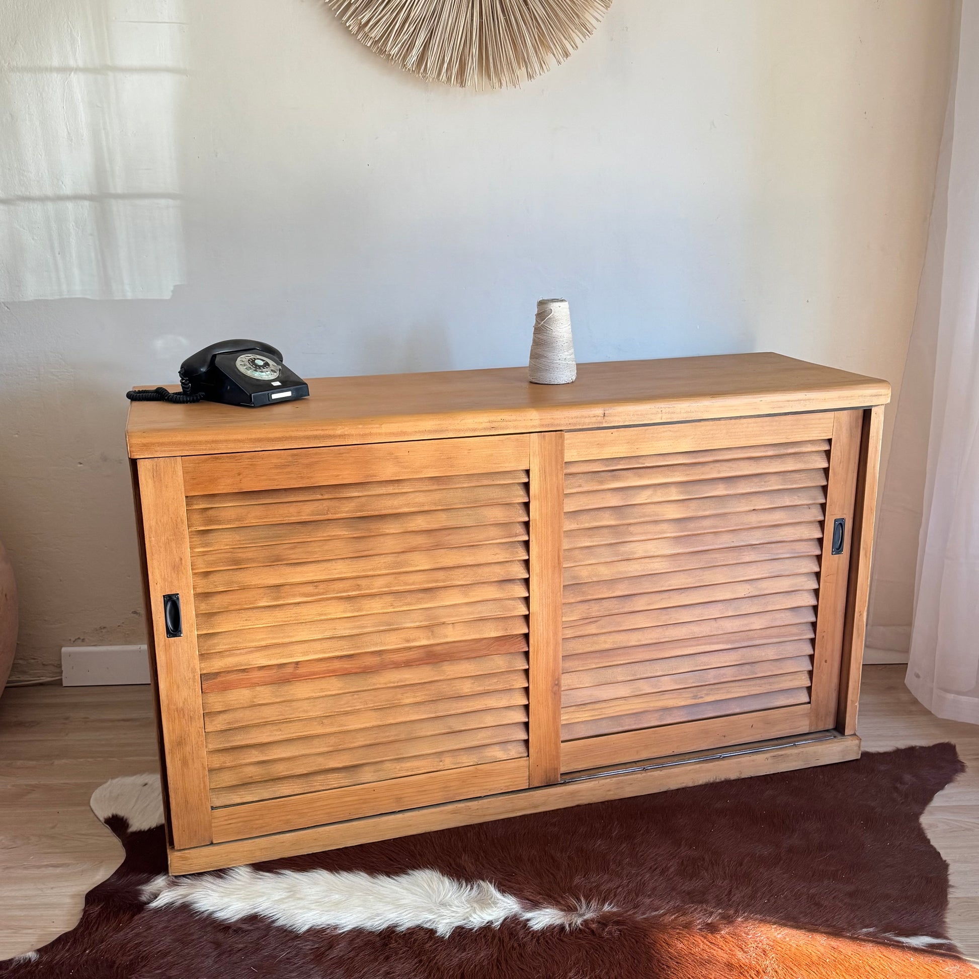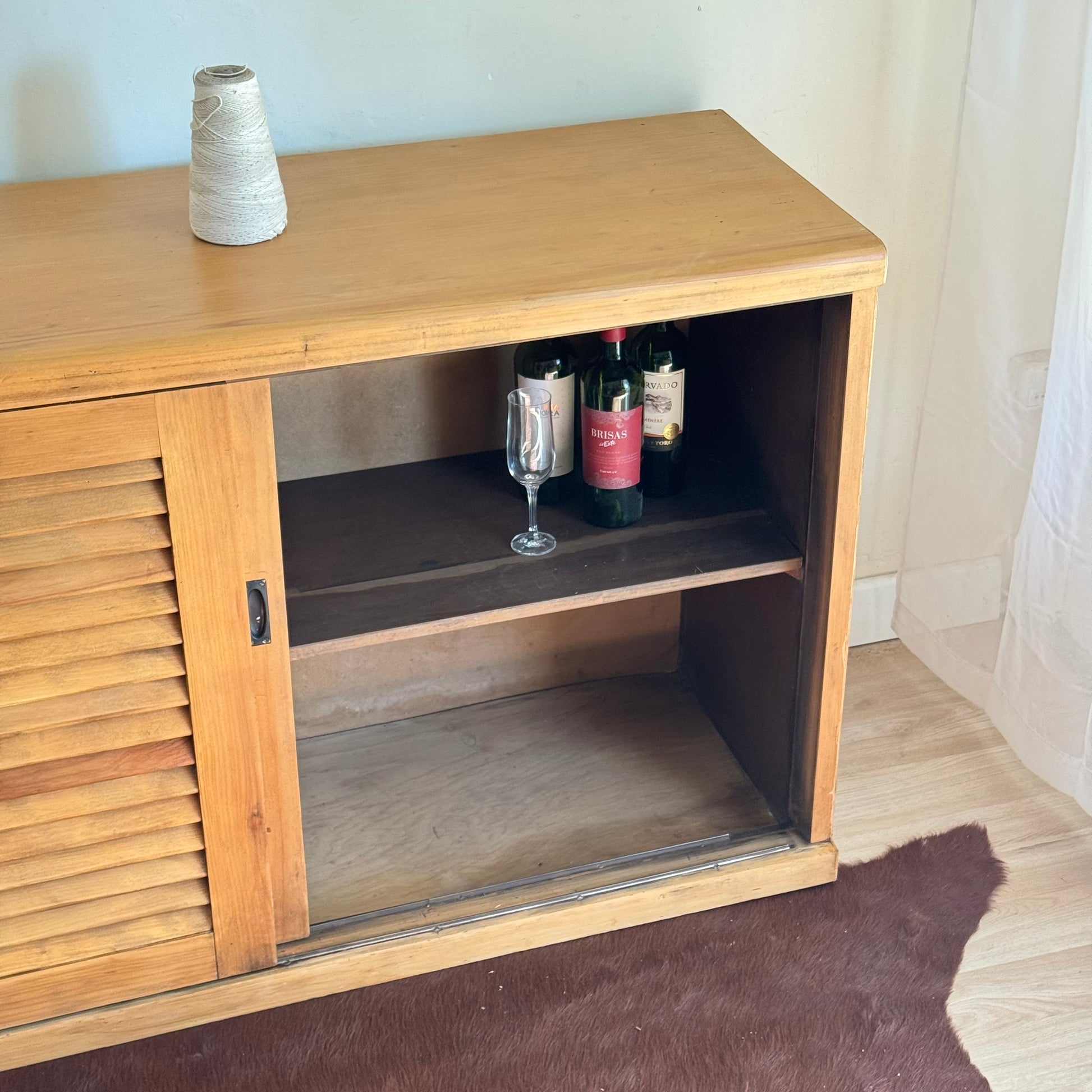Hermoso rack en pino Brasil, dos puertas de celosía corredizas. Muy buena capacidad y súper ubicable. Tratado con laca poliuretanica.
