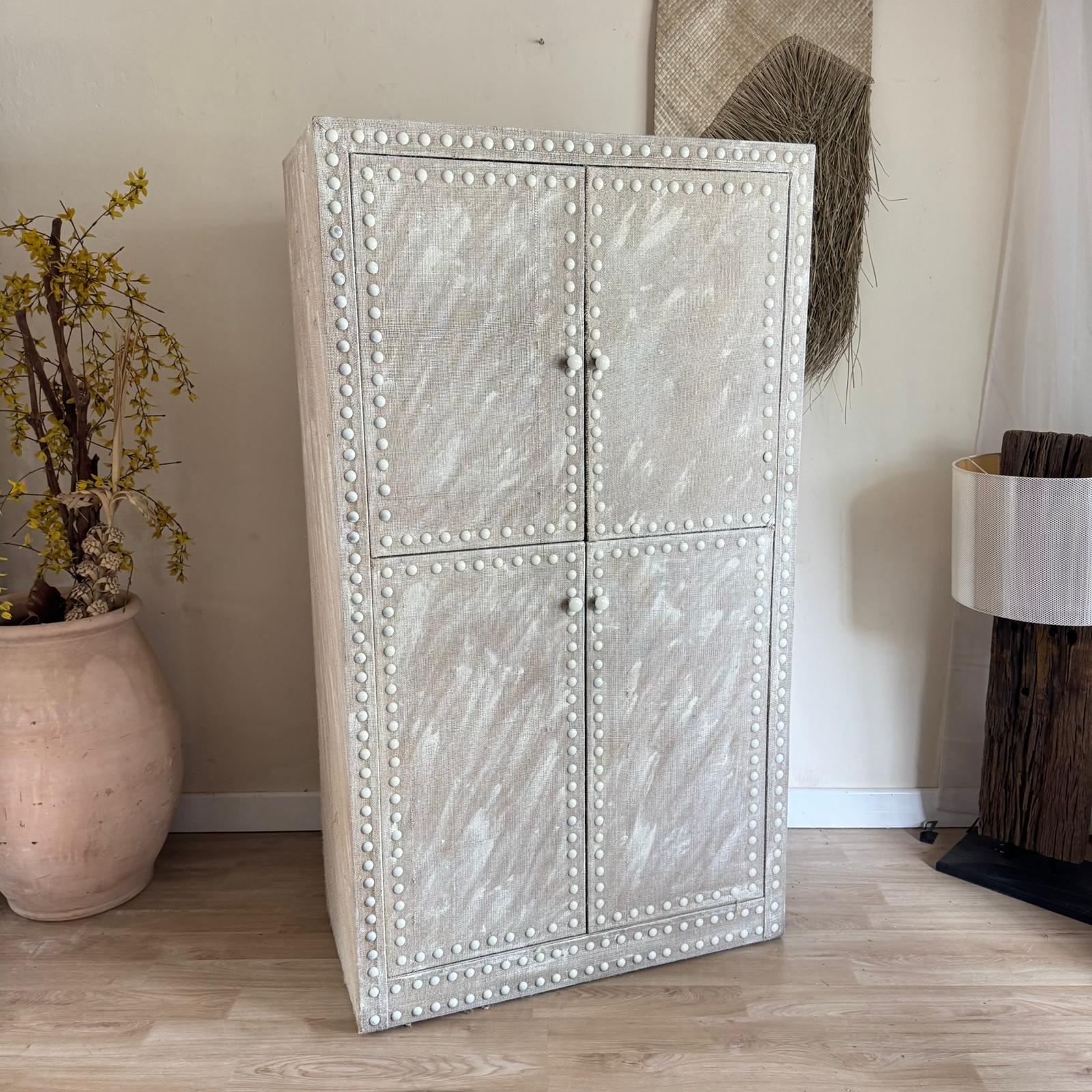 Lindo barcito en madera y arpillera, cuatro puertas con cajon interior y bandeja. Muy buena capacidad y muy buenas dimensiones.