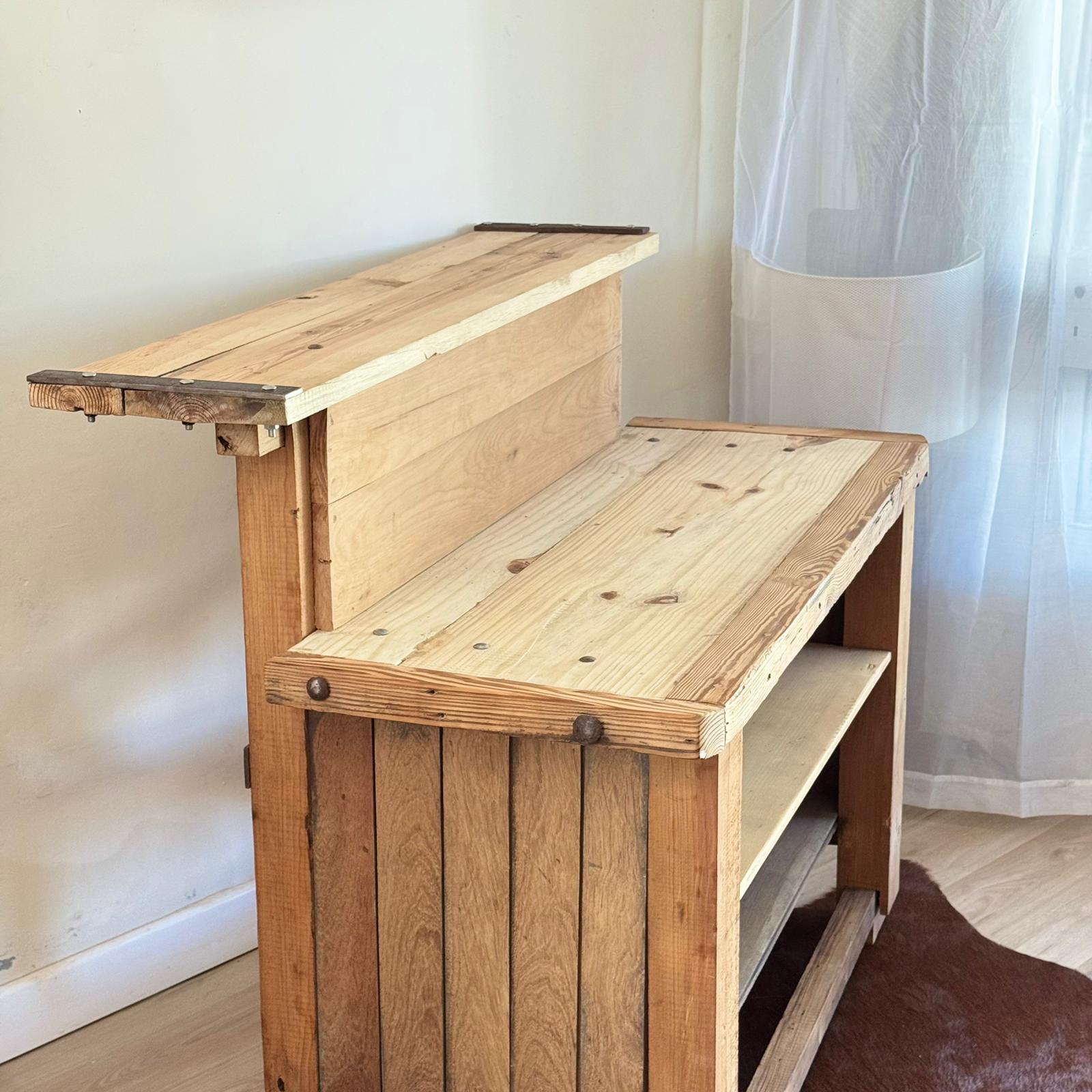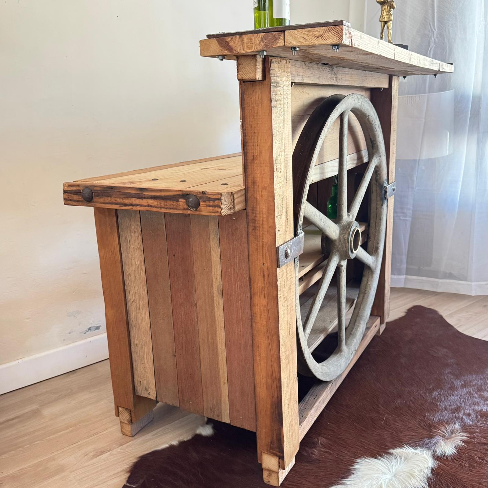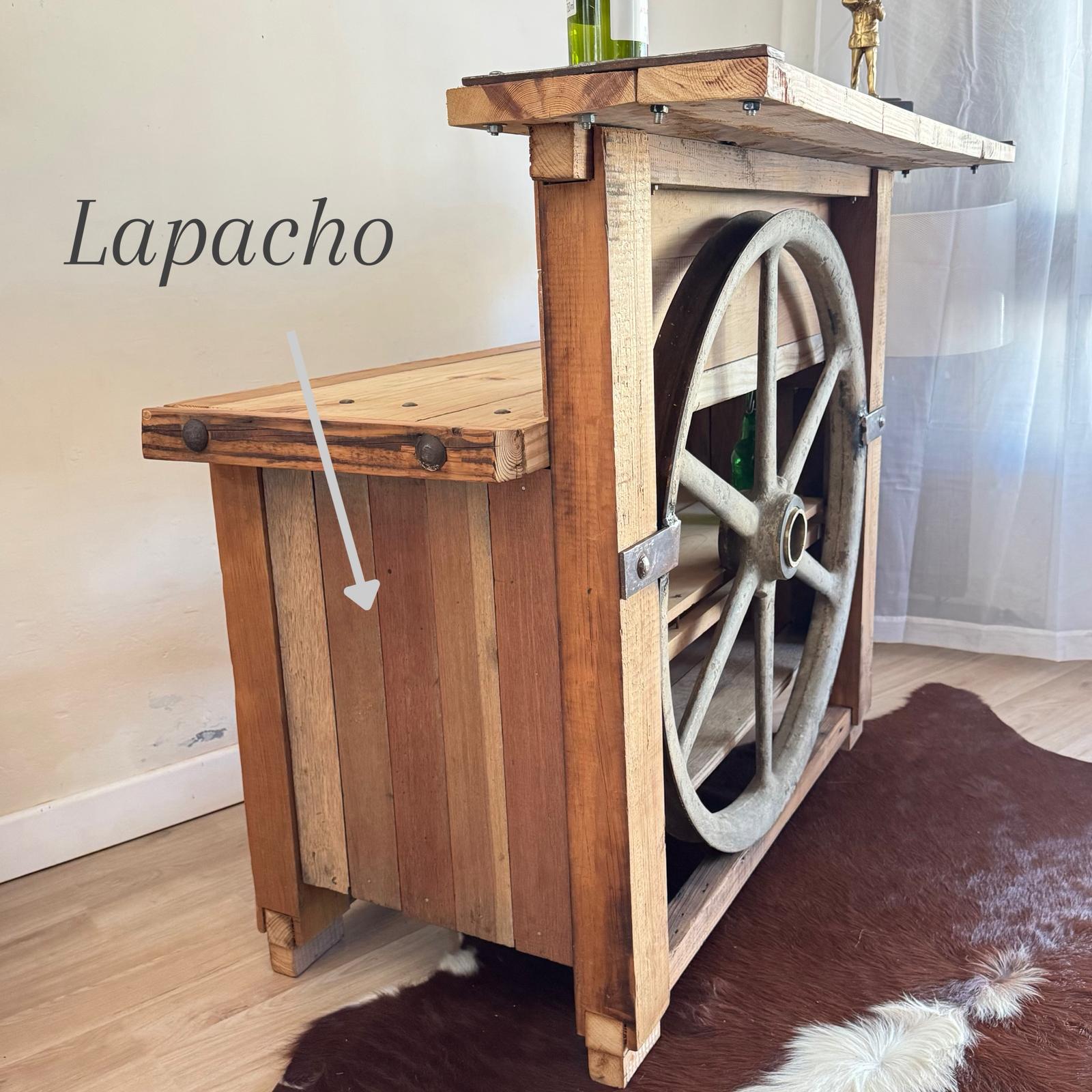 Tremenda barra rústica, totalmente maciza en pinotea y lapacho. Con polea antigua en hierro fundido, muy buenas dimensiones.