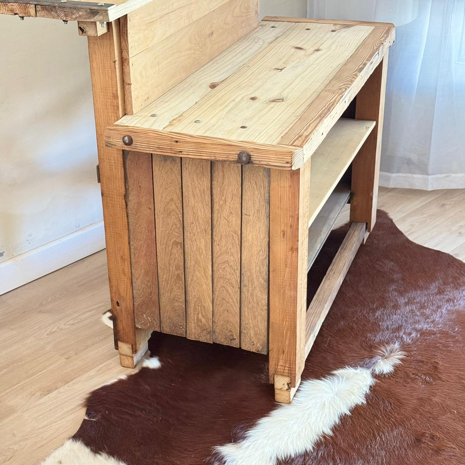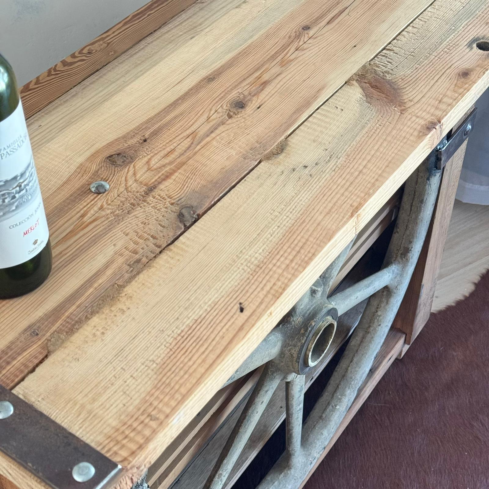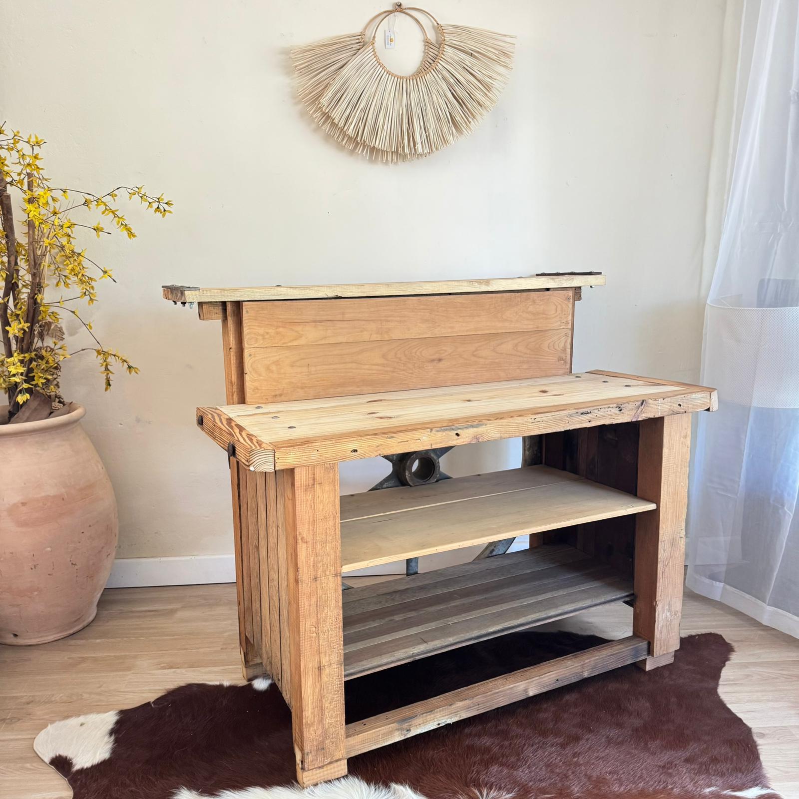 Tremenda barra rústica, totalmente maciza en pinotea y lapacho. Con polea antigua en hierro fundido, muy buenas dimensiones.