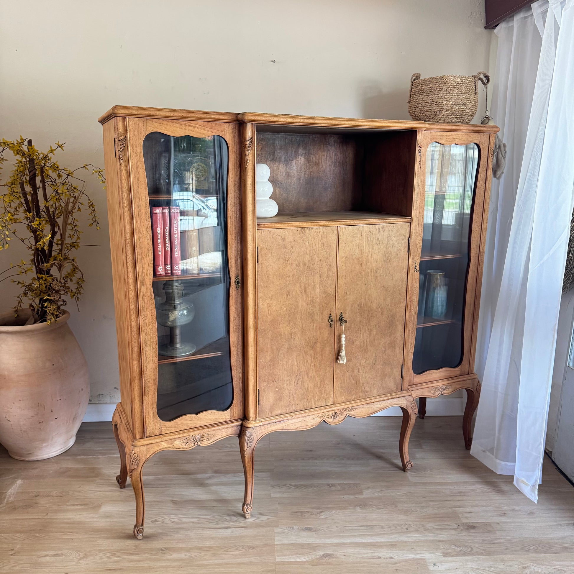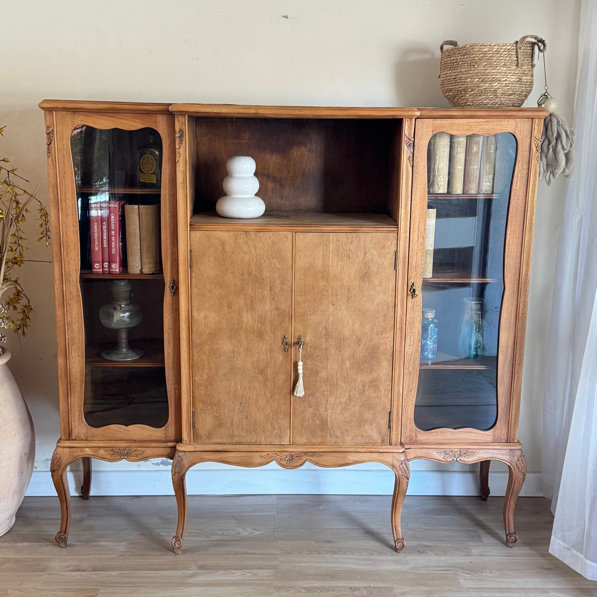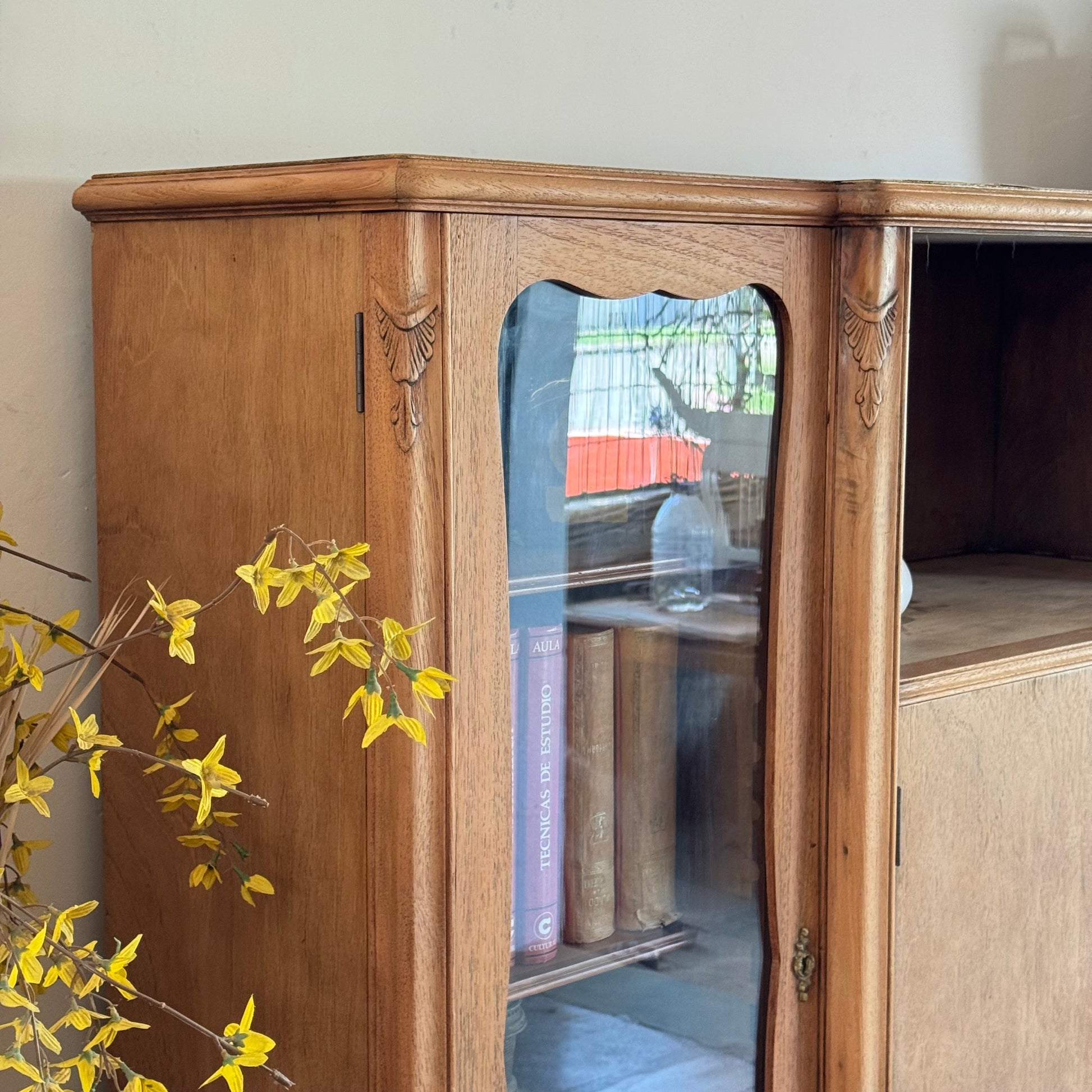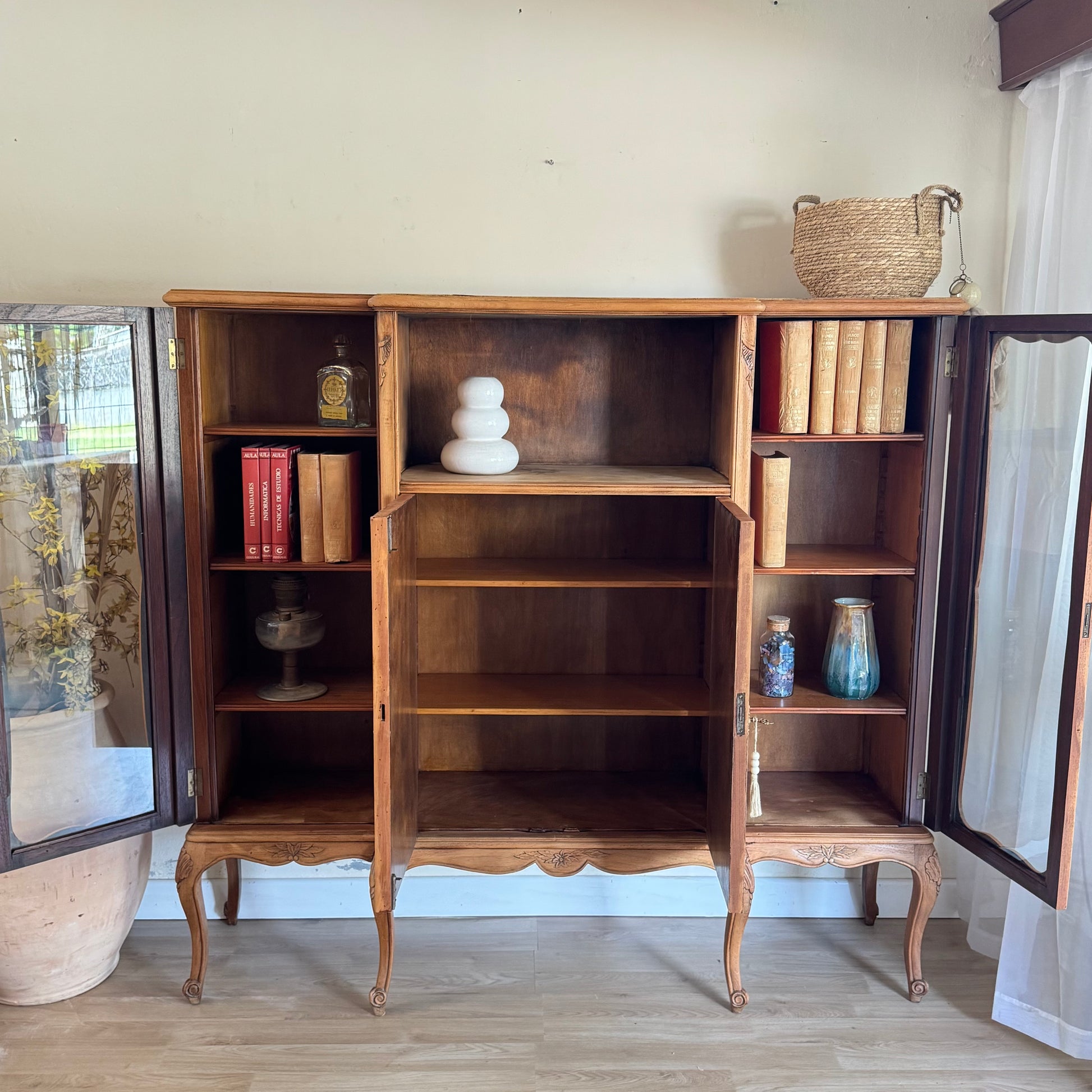 Hermosa biblioteca francesa en madera de cedro, cuatro puertas dos de ellas con vidriadas. Muy buena capacidad de almacenamiento, y muy buenas dimensiones.