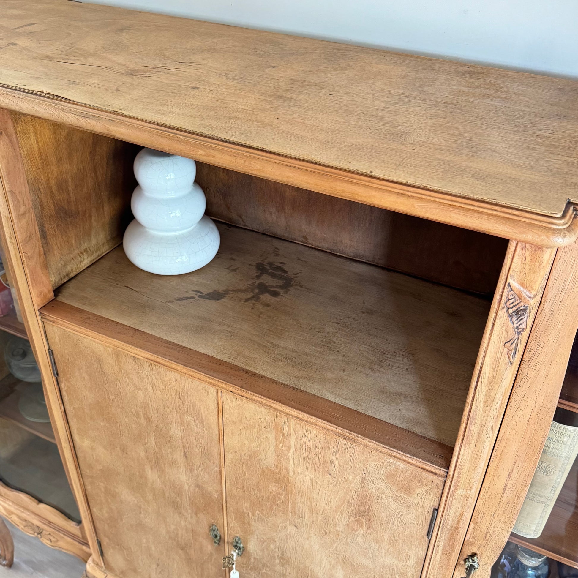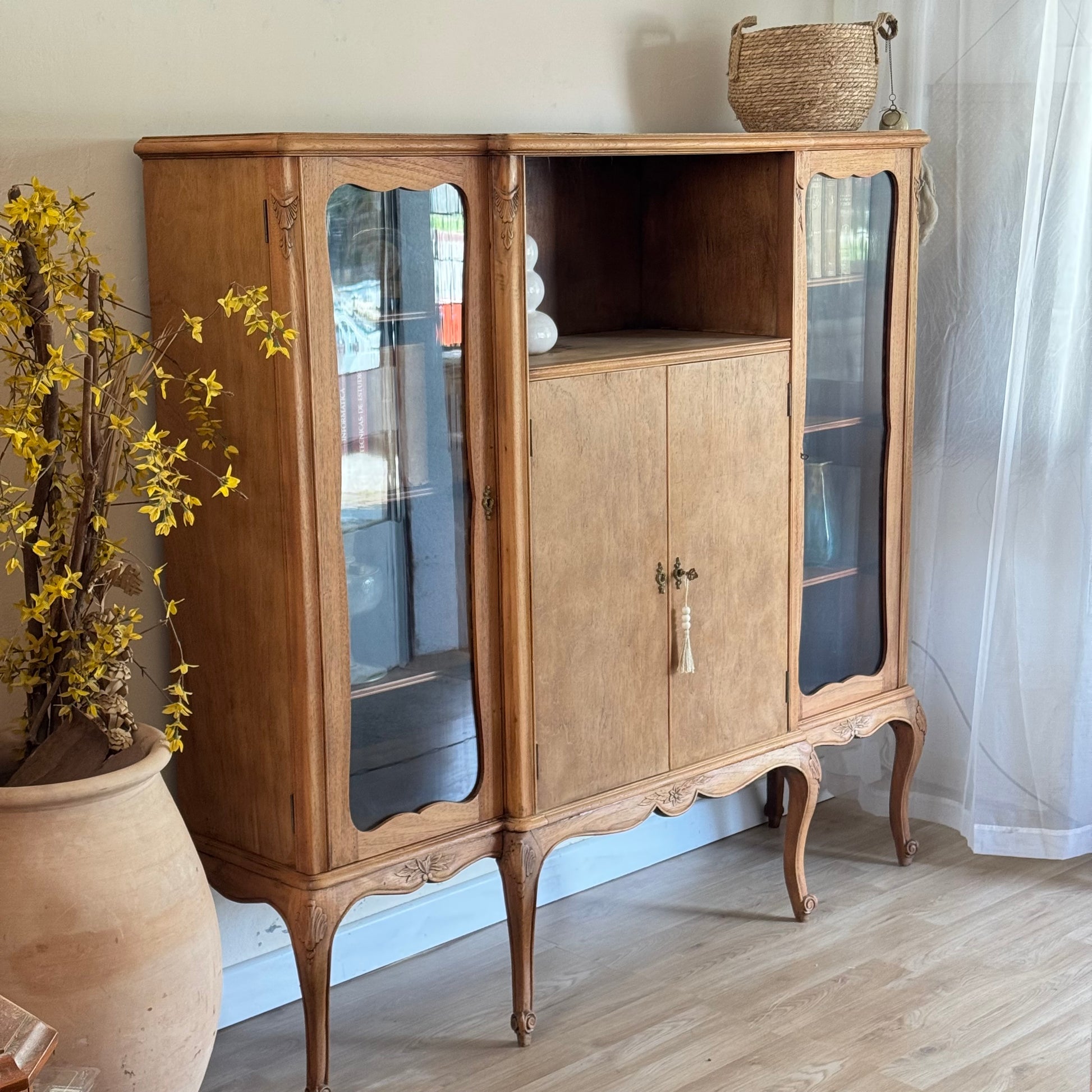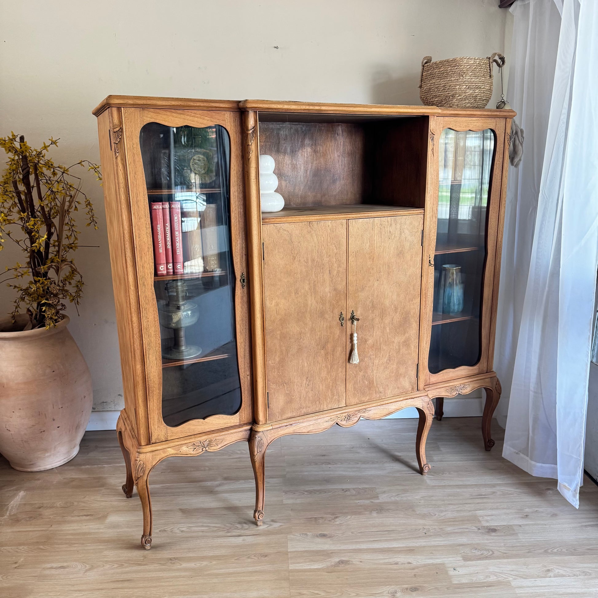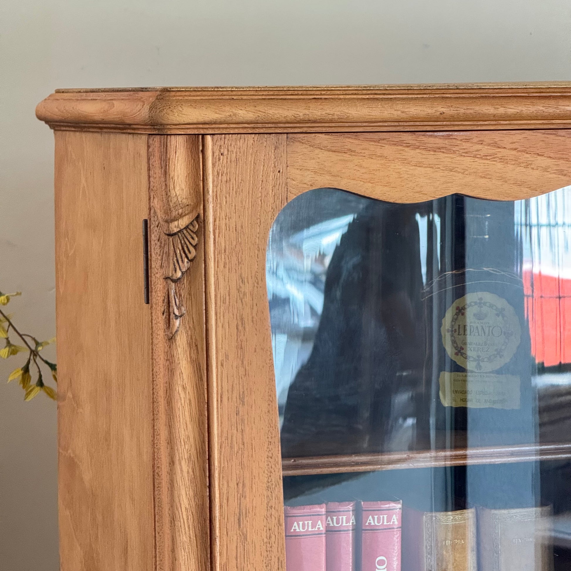 Hermosa biblioteca francesa en madera de cedro, cuatro puertas dos de ellas con vidriadas. Muy buena capacidad de almacenamiento, y muy buenas dimensiones.