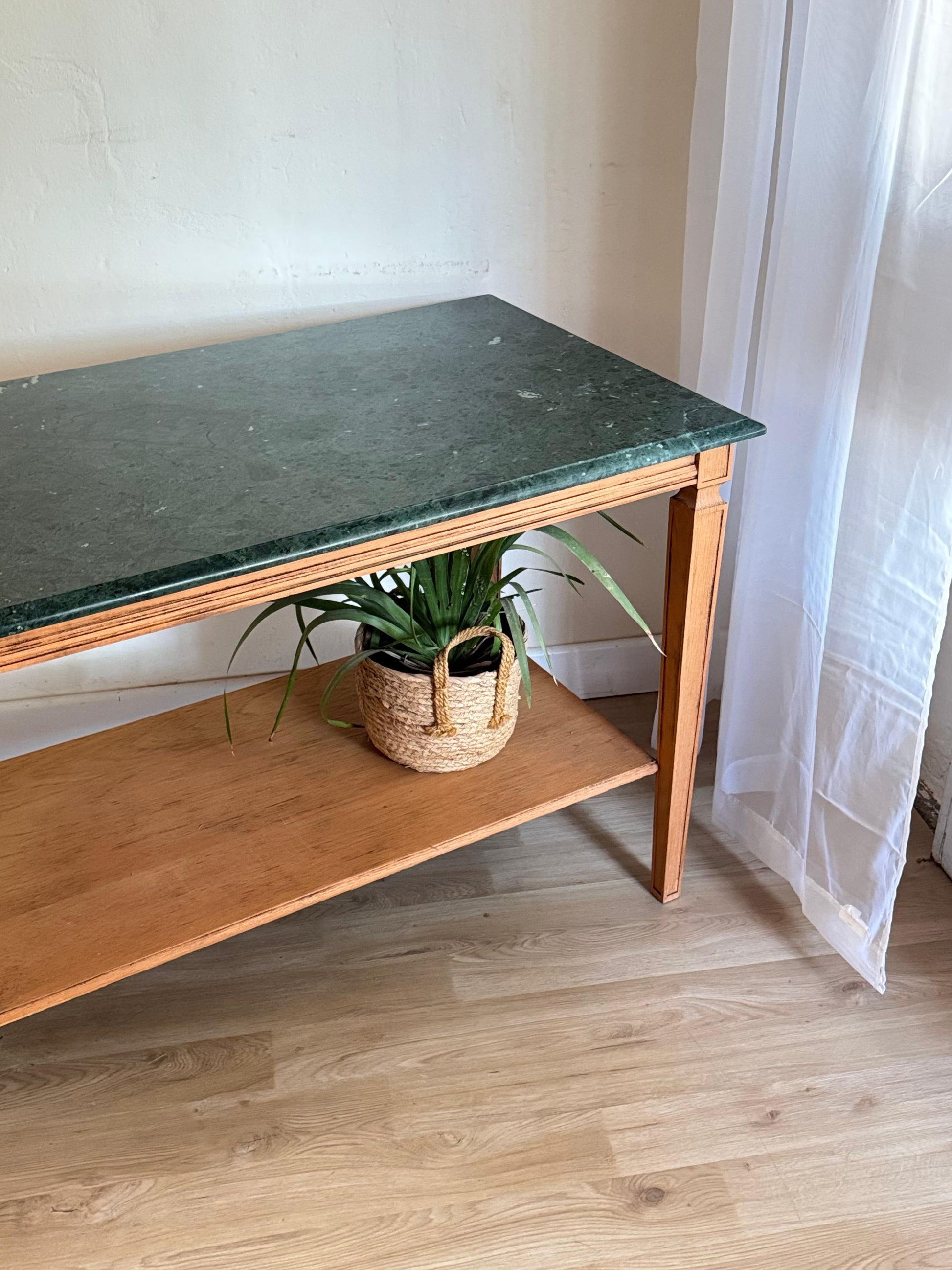 Hermosa mesa recibidor, tapa de granito verde. Madera de cedro!! Súper elegante, muy ubicable y funcional!!