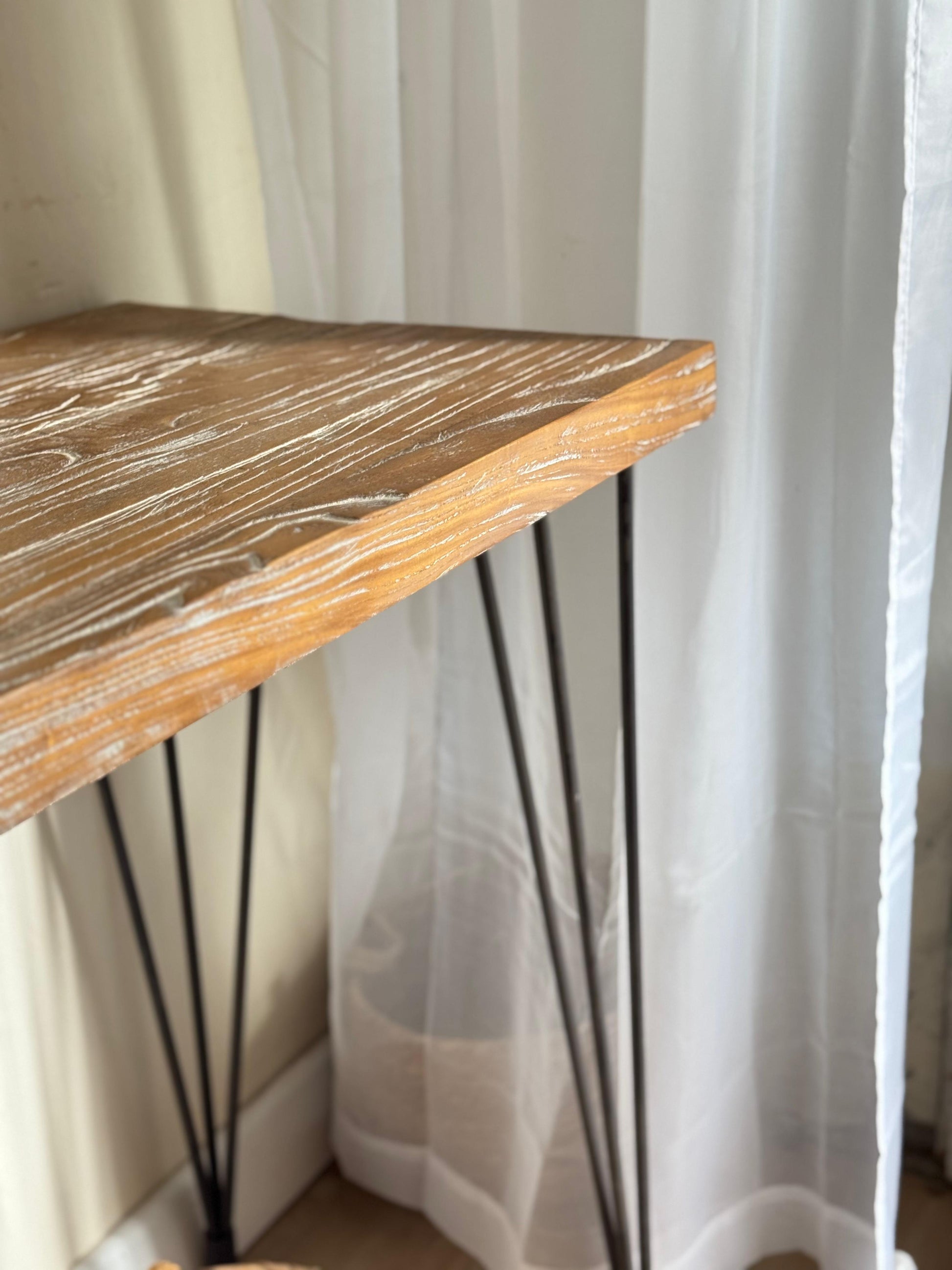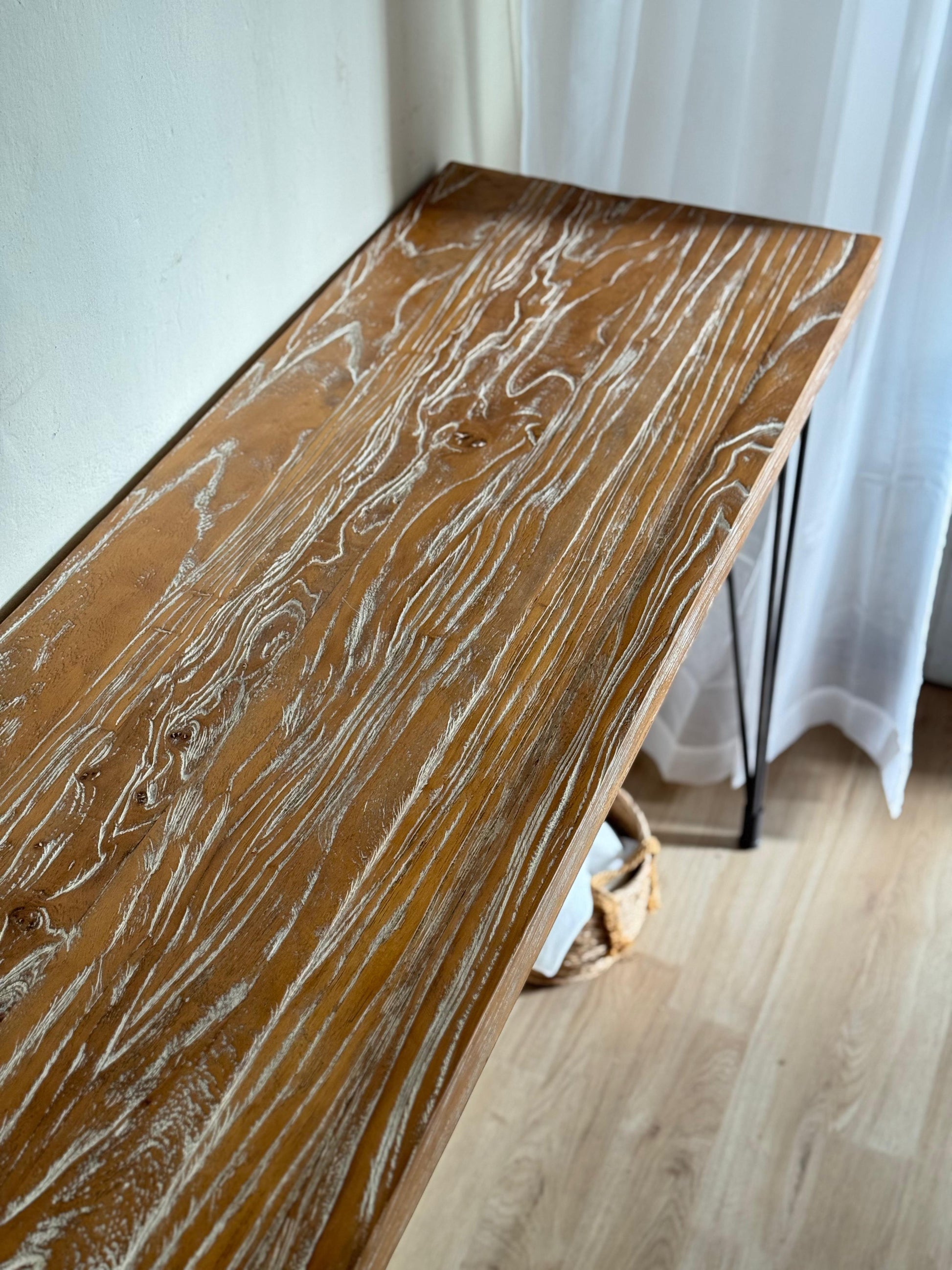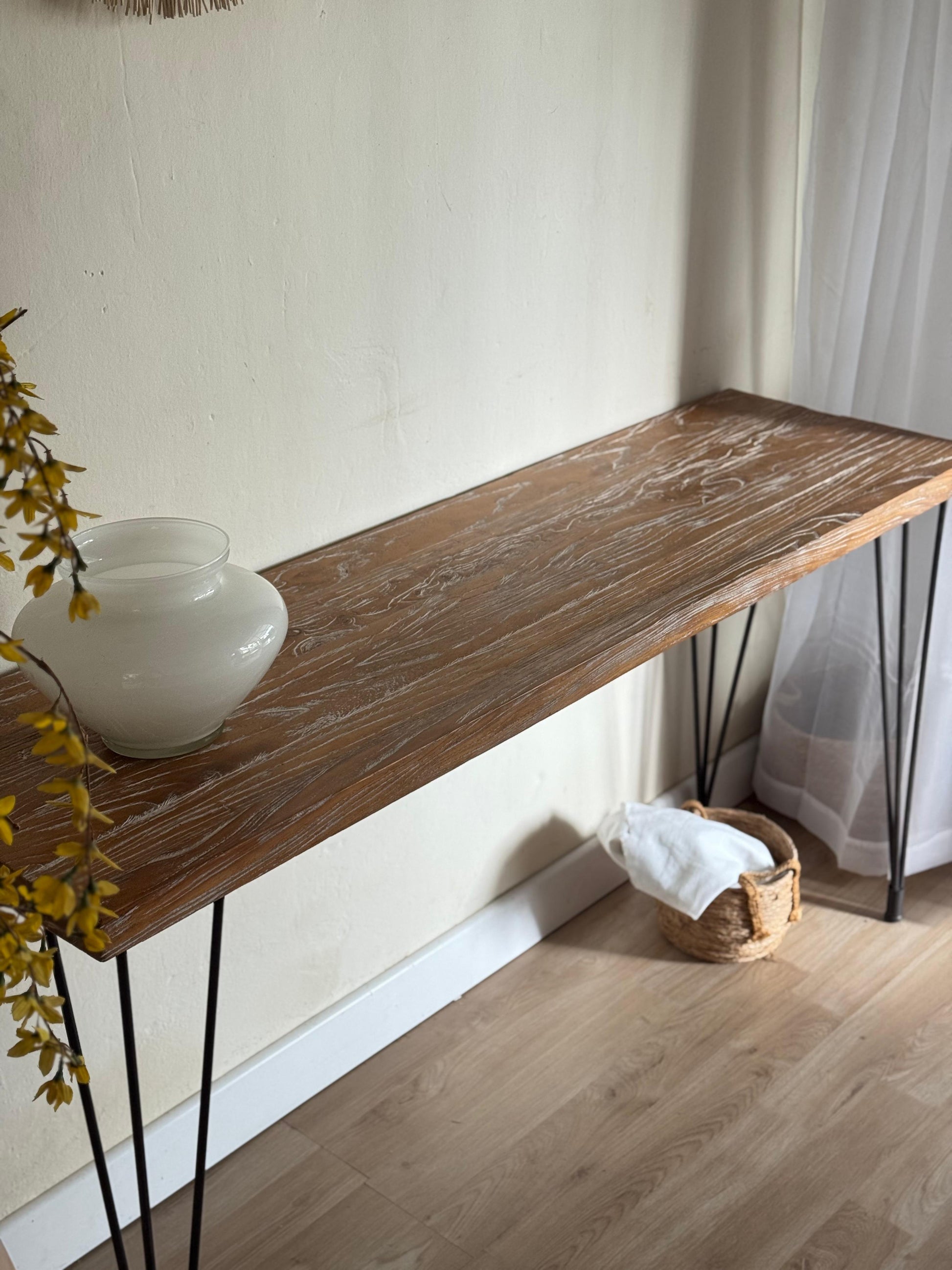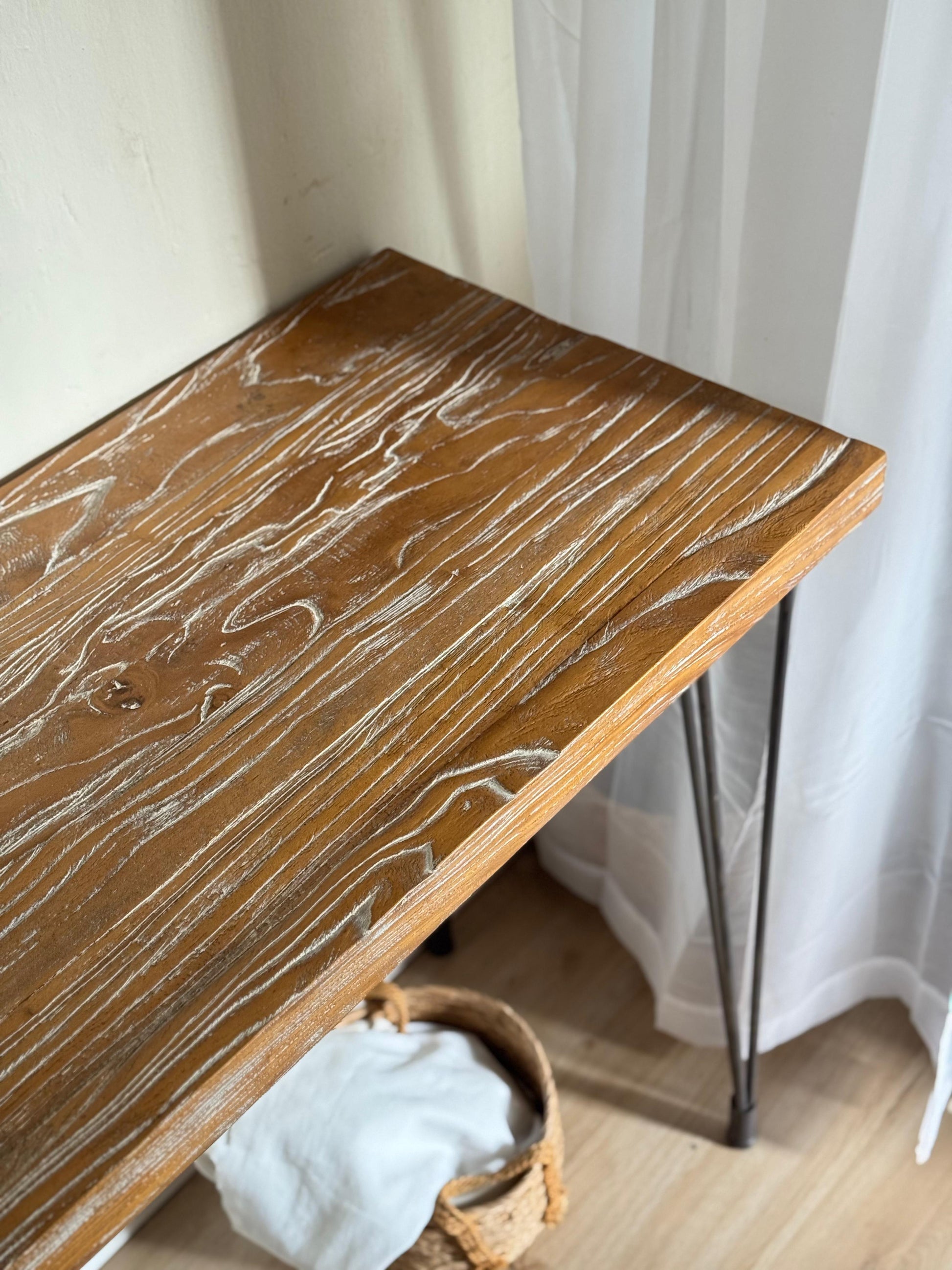 Hermoso recibidor, madera maciza de alamo y patas en hierro.